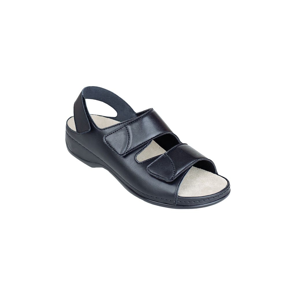 The Sofie model is one of the top sellers from the stretch range by Berkemann. A minimalist and simple design coupled with functional features make Sofie a harmonious women’s sandal with the feel-good factor. Its partial stretch inserts on the inside of the shoe noticeably relieve pressure and chafing points right from the first day, whilst two infinitely-adjustable broad straps across the instep and a heel strap with Velcro fastening ensure a perfect fit and secure support. In addition, this model, like all stretch models by Berkemann, is especially well-suited to use of individual custom-made insoles, because the existing leather-lined replaceable foot beds can easily be replaced with individual ones.