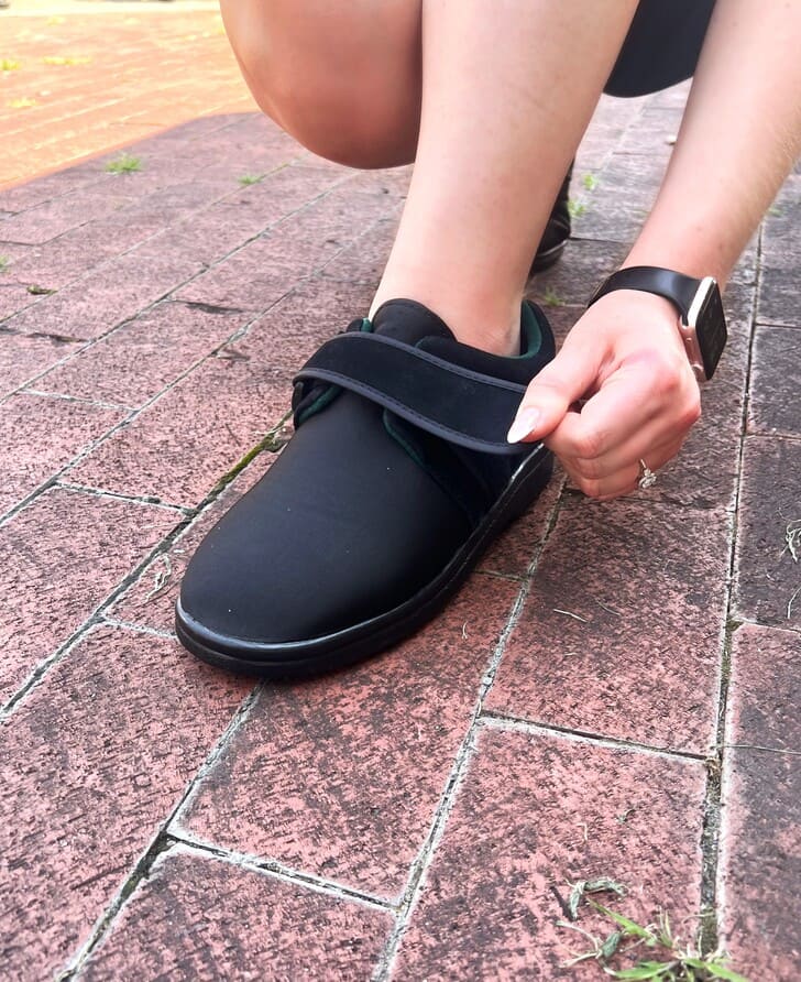 • The forefoot upper is made of a soft elastic material that easily accommodates deformities and reduces pressure from oedema