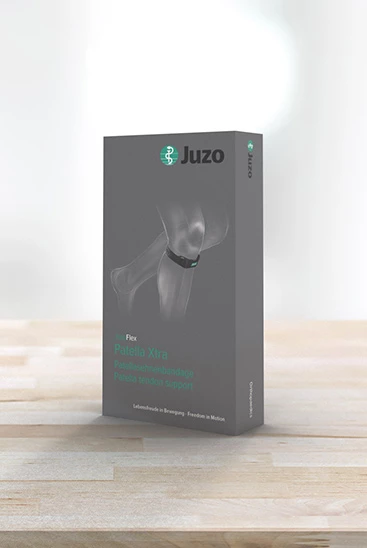 The JuzoFlex Patella Xtra is used in the conservative treatment of patella tip syndrome. Its main aims are pain reduction and support of the healing process. The physiological guidance of the patella is improved, helping the patient to regain pain-free movement.