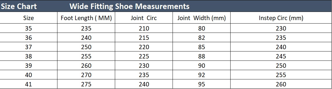 G Fitting (Wide) 1/2 size wider than regular, offering additional room for comfort.
