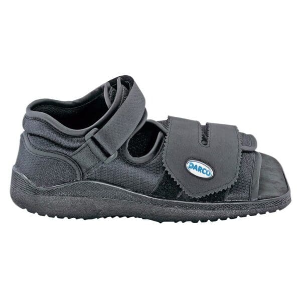 The fully customisable insole is double-padded and removable to accommodate the Peg-Assist off-loading insole. The square toe design acts as a bumper to provide extra protection and facilitates better left/right fit. MetaShank protection provides more rigid control under the metatarsal heads. The strapless closure eliminates buckle pressure on the forefoot and can expand to accommodate dressing up to 17" in circumference. Rocker Sole reduces plantar pressure on the heel and forefoot by over 25%. Fully compatible with DARCOs Peg-Assist off-loading insole.