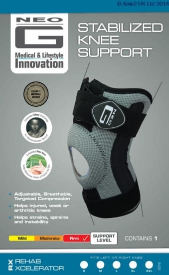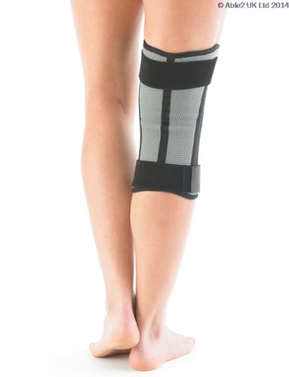 The Neo G RX Stabilized Knee Support is constructed from breathable fabric and designed to help with knee strains, sprains and instability and is useful for rehabilitation following knee trauma. For additional comfort and reassurance, the support features integrated flexible stays and a premium quality patella silicone insert to dampen vibrations located directly under the kneecap. This cushioning also guides patellar tracking and helps relieve pressure in the area. An elasticated lacing system helps provide controlled compression with adjustable support. Embedded Silver* for microbial and odour control & Embedded Aloe Vera helps moisturise, soften and soothe the skin. *Silver - helps reduce microbial growth in the fabric support and thereby control odour. The silver is intended to protect the support and does not extend protection to the skin. SIZING GUIDE - To size, measure knee circumference (cm) - Small: 30 - 34 cm; Medium: 34 - 38 cm; Large: 38 - 42 cm; X-Large: 42 - 46 cm; XX-Large: 46 - 50 cm.