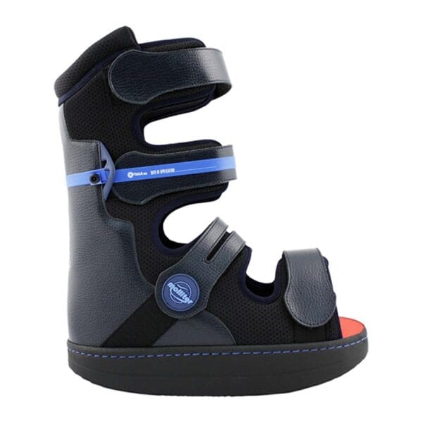 High leg-foot walker with components directly attached that can be adapted to the patient, high heat-mouldable stiffener, breathable and washable upper.