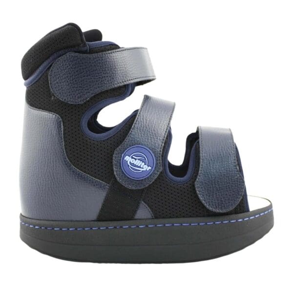 Low leg-foot walker with components directly attached that can be adapted to the patient, high heat-mouldable stiffener, breathable and washable upper.