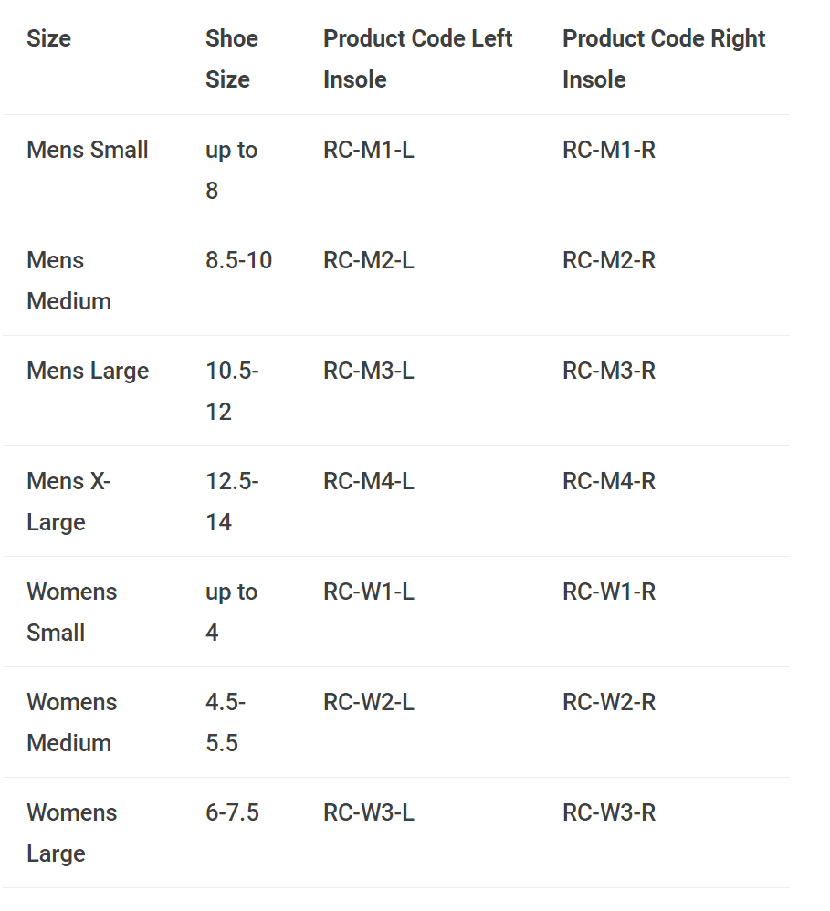 The Relief Contour insole fits the Relief Dual Shoe and also the Black DARCO Medical Surgical Shoe. Available in 7 sizes – 4 mens and 3 womens in either a left or a right foot. Please ensure you order the correct size to correspond with the shoe(s) you have ordered.