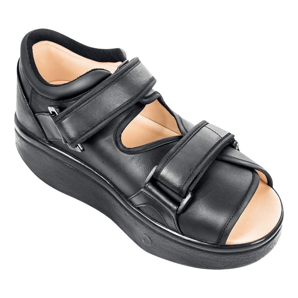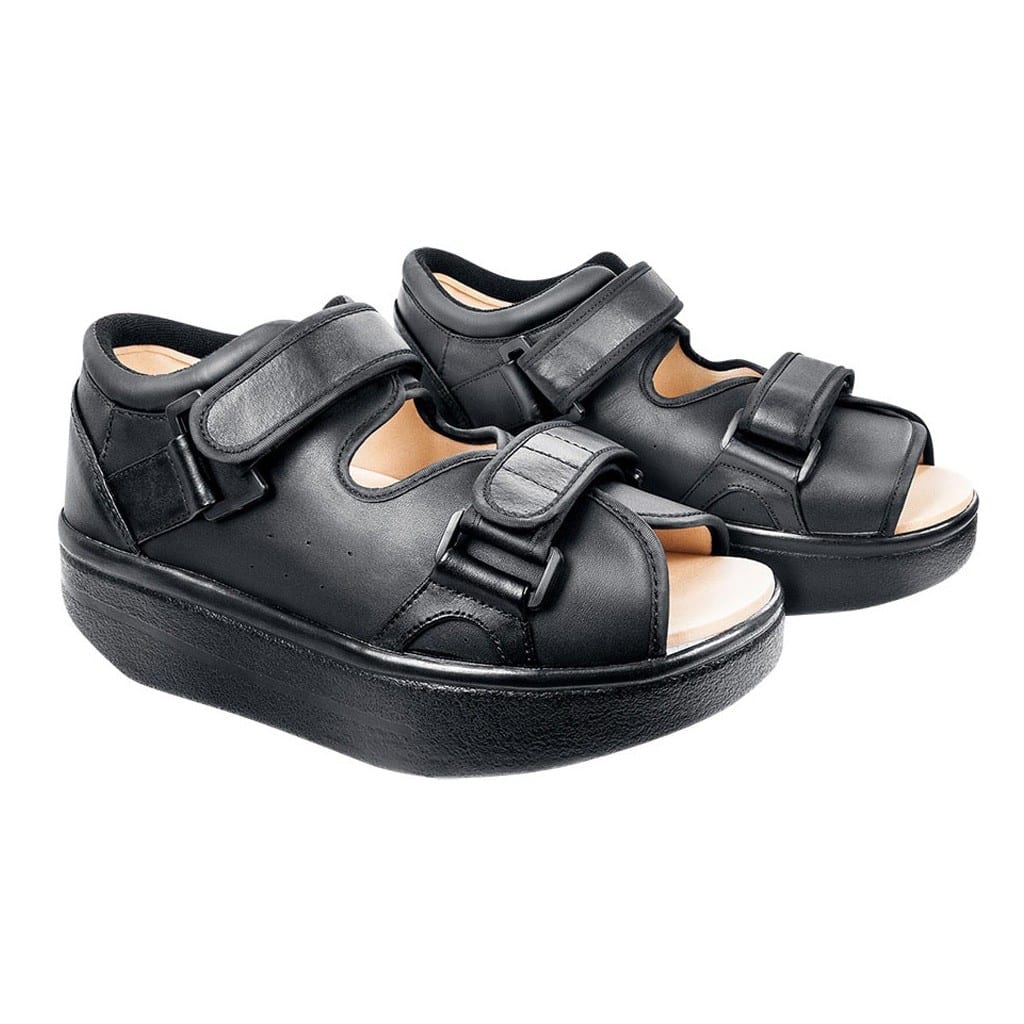 The circumferential counter of the shoe forms a deep pocket in the sole to accommodate a variety of insoles under the ulceration or area of pressure.