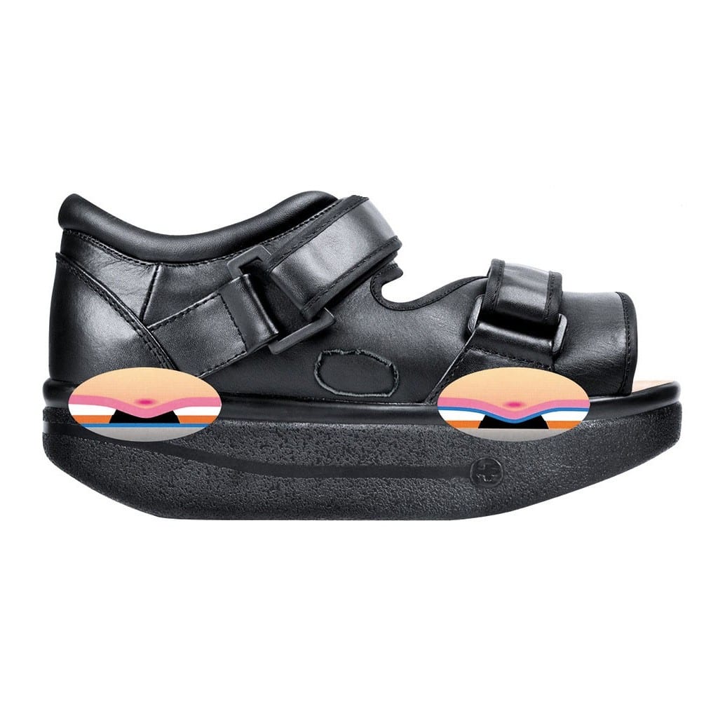 The insole comprises 4-cushioning layers. The smooth portion of the sole reduces shearing forces, while the rough part of the sole secures stability whilst standing. The WCS® is compatible with the WCS® Light insoles & the TwinShoe® Balance Shoe.